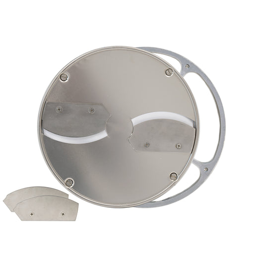 American Eagle vegetable slicer AE-VS12NH/AE-GV22 slicer disk is stainless steel, and is adjustable to 1/16", 1/8", 3/16". This also comes attached...