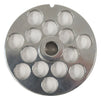 This #12 Grinder Plate produces an output of 9/16” (14MM). It is for American Eagle commercial #12 meat grinder AE-G12N. It is stainless steel.