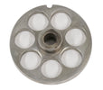 This #12 Grinder Plate produces an output of 11/16” (18MM). It is for American Eagle commercial #12 meat grinder AE-G12N. It is stainless steel.