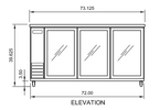 73" wide three-section glass door back bar refrigerator with 20.7 cu. ft. capacity