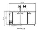 73" wide three-door direct draw draft beer dispenser with 20.7 cu. ft. capacity
