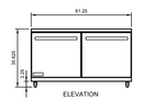 61.25" wide two-section worktop freezer with 15.5 cu. ft. storage capacity