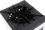 Heavy, cast iron three- ring burner, rated at a total of 80,000 BTU/hr