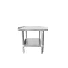 18 gauge stainless steel throughout the stand resists corrosion, rust, and discoloration, even with constant exposure to moisture and cleaning chemicals. The surface stays professional-looking and durable through years of daily use. Adjustable bullet feet provide 1" of height adjustment to keep the stand level on uneven floors, so your equipment remains stable and operates safely. The stand ships knocked down with all tools included, so you can assemble it on-site without extra equipment or installers. This packaging lowers freight costs and makes it easy to move through tight spaces. At 70.1 lbs and 60.25" wide, it offers the largest work surface in the 30" series. The extended top fits multiple pieces of equipment, provides room for staging, and allows side clearance for loading, unloading, or operator access.