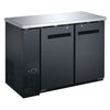 This 48" black swing solid door back bar cooler has 11.8 cubic feet of space and includes 4 corrosion-resistant shelves. The 1.5" stainless stop can be used as a work surface or go under the counter. Brilliant LED lighting, self-closing doors with locks, and a reliable 1/5 HP compressor rounds out an impressive spec list. Perfect for any bar or restaurant.
