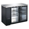 This 48" black swing glass door back bar cooler has 11.8 cubic feet of space and includes 4 corrosion-resistant shelves. The 1.5" stainless stop can be used as a work surface or go under the counter. Brilliant LED lighting, self-closing doors with locks, and a reliable 1/5 HP compressor rounds out an impressive spec list. Perfect for any bar or restaurant.