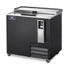 Featuring a durable black powder-coated steel exterior and a bright stainless steel interior, the AUB36R combines performance with clean, professional aesthetics. Its stainless steel sliding lid includes a lock, while a built-in bottle opener and cap catcher streamline bar service. LED interior lighting ensures clear visibility of stored beverages.