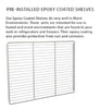 Pre-installed epoxy coated shelves.