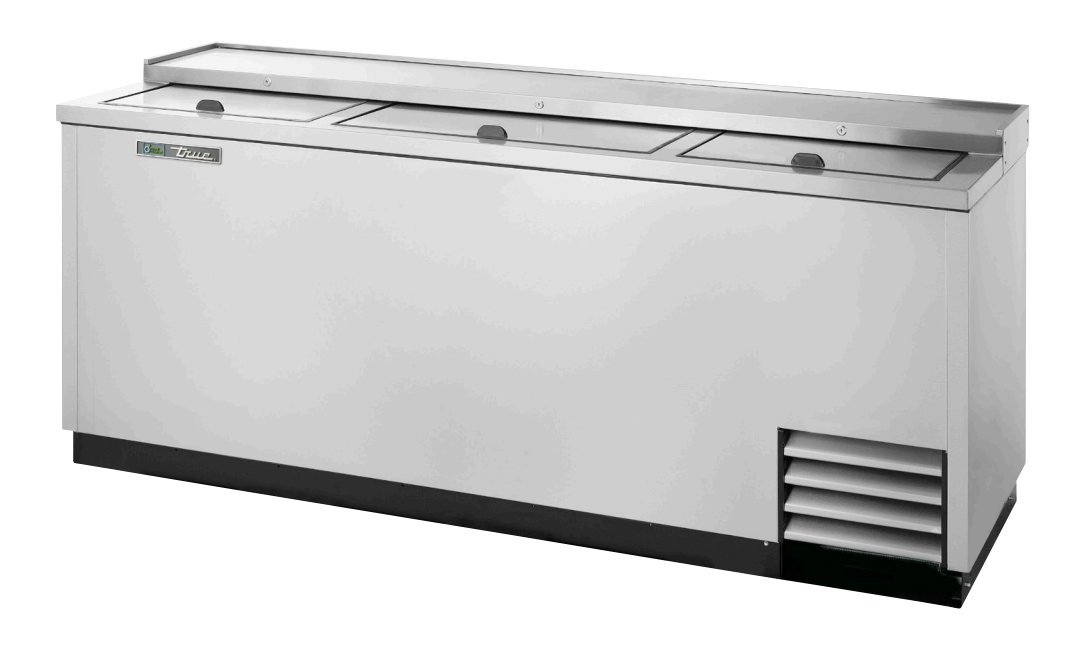 True’s horizontal bottle coolers are designed with enduring quality and value. Our commitment to using the highest quality materials and oversized refrigeration assures colder product temperatures and years of trouble free service. Factory engineered, self-contained, capillary tube system using environmentally friendly R290 hydro carbon refrigerant that has zero (0) ozone depletion potential (ODP), & three (3) global warming potential (GWP). Forced-air cooling. Positively guided airflow cools bottles on top first. Evaporator coil virtually runs length of cooler for balanced temperatures throughout the cabinet.