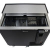 Super Deluxe (SD) models boast a stainless steel exterior (except galvanized steel back and bottom). SB models have an attractive wear-resistant black vinyl exterior. Heavy gauge stainless steel countertop and glide lids are perfect for sanitation and durability. Interior is stainless steel except galvanized steel top. Turbo Air Bottle Cooler model guarantees utmost in cleanliness and long product life. It also adds a touch of style to the most refined setting.