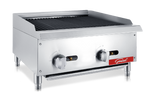The 24 inch lava rock charbroiler is available in either liquid propane (LP) or natural gas (NG)