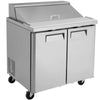 The SP 36" refrigerated sandwich prep unit fits 10 x 1/6 size pans. And it features a 10" deep removable cutting board for easy cleaning, self-closing doors, and an insulated roll top to lock in cold air. The 9 cubic feet of storage inside includes an adjustable shelf. The 1/5 HP refrigeration system features auto defrost and is electronically controlled to keep your food in the safe zone. Durable and easy to clean stainless steel construction. The 29.5" depth makes it a great addition to small kitchens.