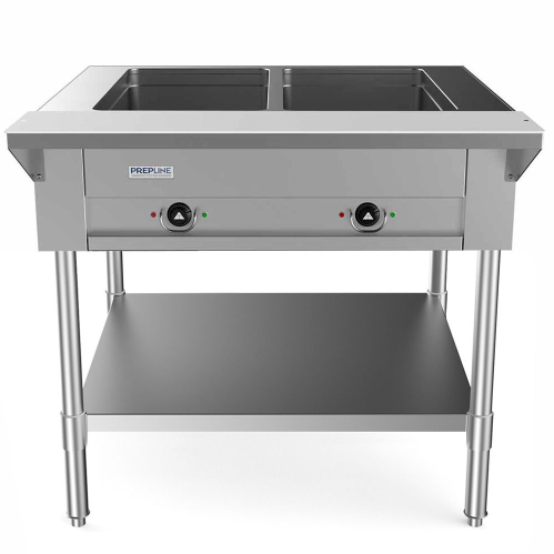 Prepline EST30-2O 32" Two Well Electric Hot Food Steam Table with Undershelf, 120V, 1000W