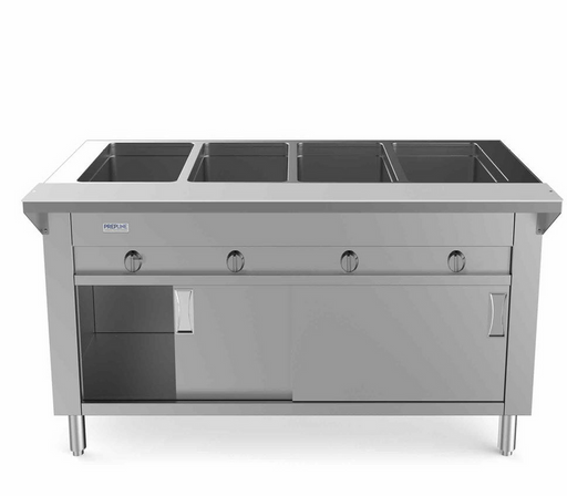 Service hot fresh food to your customers with Prepline’s stainless steel gas steam table cabinet with optional doors. This enclosed cabinet steam t...