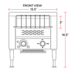 This Cookline CT2 15" Electric Countertop Conveyor Toaster Oven features stainless steel construction. The adjustable conveyor speed allows you to control the speed and temperature at which your bread/bun is toasted. The CT2 is capable of toasting 300 slices per hour, which can significantly assist in your restaurant's food prep needs. And a pull-out crumb tray makes disposal of excess crumbs easy.