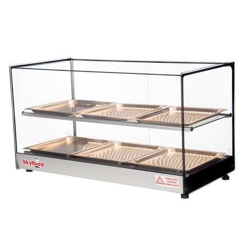 The Skyfood FWDC2-33-6P Food Warmer Display Case is a commercial countertop unit designed to preserve hot food quality while showcasing it with sty...