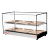 Durable and Elegant: The 33" wide design features two levels of stainless steel pans, each shelf holding three pans. The unit's stainless steel base, silkscreened side glass, and anodized aluminum front base combine durability with a sleek presentation.