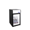 The Atosa CTD-3S 2.4 cu ft Countertop Glass Door Merchandiser Cooler is a versatile display solution ideal for showcasing packaged foods and beverages. This model features a lighted header for enhanced merchandising visibility and a cold wall cooling system designed for energy-efficient performance. With its black exterior, recessed door handle, and double pane glass door, the CTD-3S blends durability with sleek aesthetics.