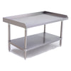 This Prepline 30"W x 60"L equipment stand constructed from 18 gauge stainless steel that holds heavy-duty commercial kitchen equipment. It has a three-sided 2" riser to keep equipment from sliding off. Perfect for holding griddles, mixers, electric fryers, and other commercial kitchen equipment.