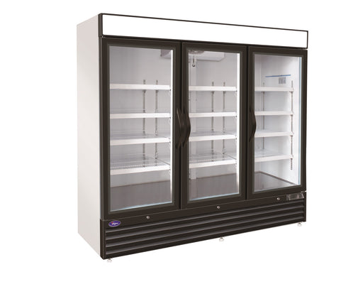 • Maxx Cold MXM3-72FHC X-Series Triple Glass Door Merchandiser Freezer, Free Standing, 81"W, 72 cu. ft. Storage Capacity, in White