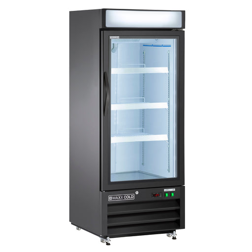 • Maxx Cold MVMF23 V-Series Single Glass Door Merchandiser Freezer, 27"W, 23 cu. ft. Capacity, in Black (MVMF23B)