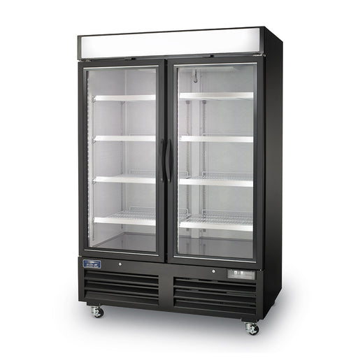 • Maxx Cold MVMF48 V-Series Double Glass Door Ice Merchandiser Freezer, 54"W, 48 cu. ft. Capacity, in Black (MVMF48B)