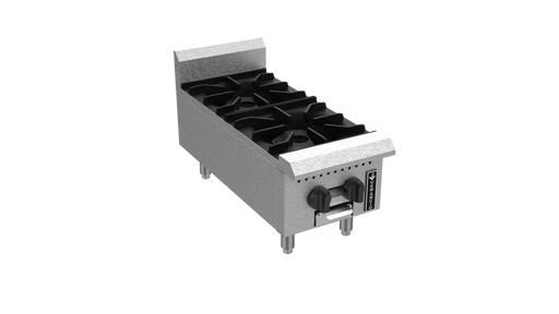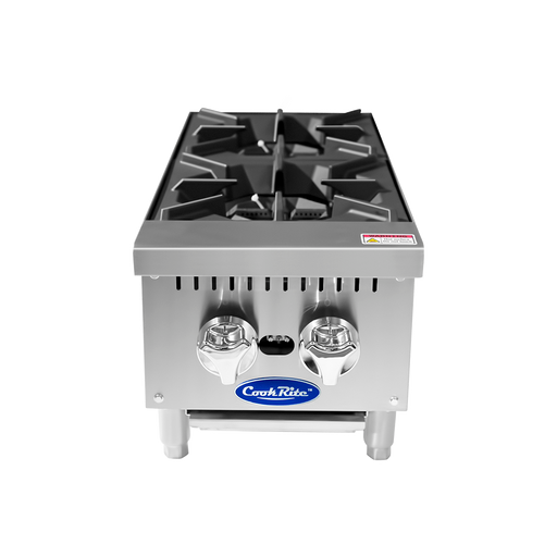 This Cookline CHP-12-2 hot plate range incorporates high-power natural gas burners, a heavy-duty 12" x 12" cast iron grate, and an eye-catching sta...