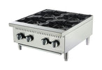 The Migali C-HP-4-24 (4) burner, counter-top hot plate is excellent for cooking the very best appetizers and entrees. This model incorporates heavy-duty, cast iron trivets and a removable, full width slide out waste tray. Each Migali Hot plate burner is rated at 25,000 BTUs and can be manually adjusted. Finally, the C-HP-4-24 is also eye catching, boasting a high polished stainless steel exterior and interior, (4) chrome temperature knobs and stainless steel adjustable legs.