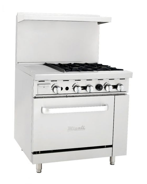 Migali C-RO4-12GL-NG 4 Burner Range, 12" Griddle Left Side, (1) Oven, Natural Gas