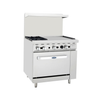 32,000 BTU top burners, 27,000 BTU griddle & 27,000 BTU oven burners