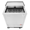 Super Deluxe (SD) models boast stainless steel exteriors (except galvanized steel back and bottom). SB models have an attractive wear-resistant black vinyl exterior. Heavy gauge stainless steel countertop and glide lids are perfect for sanitation and durability. Interior is stainless steel except galvanized steel top. Turbo Air Glass Froster model guarantees the utmost in cleanliness and long product life. It also adds a touch of style to the most refined setting.