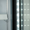 Interior LED lighting illuminates the contents of the merchandiser, enhancing product visibility and presentation