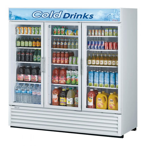 Turbo Air TGM-69R-N 3 Door Sliding Glass Merchandiser Refrigerator, White w/ Black Framed Door