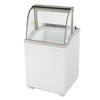Sleek new curved front and top glass is attractive and draws attention at once. Deep lowered glass front optimizes product visibility and impulse buying. This merchandiser is perfect for ice cream viewing and dipping.