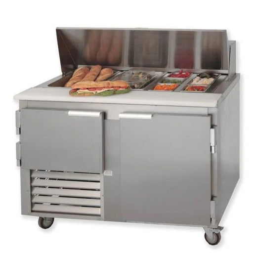 The Leader LM48 Mega Top Sandwich Prep Table is ideal for any deli, café, or restaurant that requires maximum storage and prep space. With its comp...