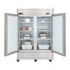 1. Reach-in freezer with two self-closing, locking doors with easy-to-grip recessed handles