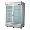 Reach-in refrigerator with two self-closing, locking, dual-pane glass doors with easy-to-grip handles