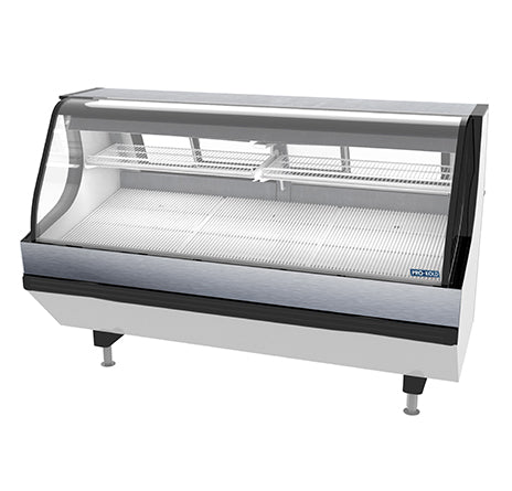 Pro-kold DDC-80 74″ Curved Glass Deli Display Case, White Exterior, Stainless Steel Worktop