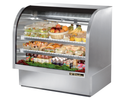 True’s curved glass deli case combines efficient, high volume merchandising and exceptional refrigeration with an elegant curved glass front for sophisticated presentation of deli products. High humidity gravity coil refrigeration system maintains 38°F to 40°F (3.3°C to 4.4°C) for the freshest display of meats, cheeses and deli products. Self-contained, environmentally friendly (CFC free) 134A refrigeration system.