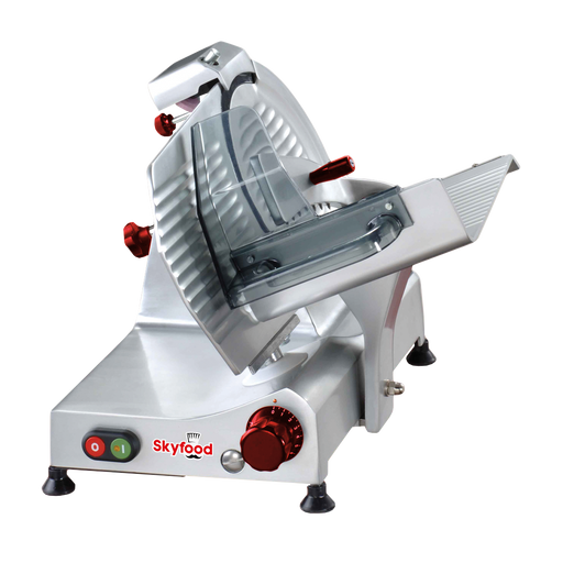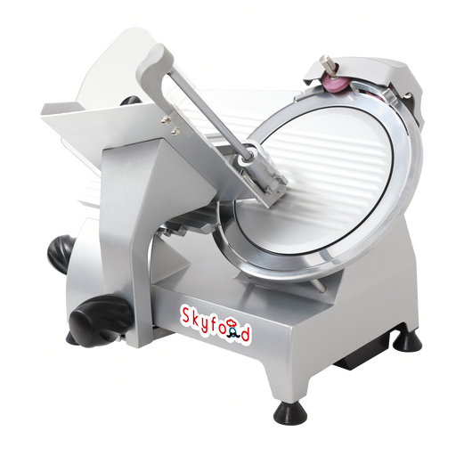 • Skyfood AF300 12" Manual Gravity Feed Slicer, Belt Driven, Built-In Sharpener