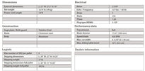 | Construction | Anodized aluminum and Stainless steel |