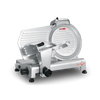 The Skyfood 220E 9" Economy Slicer is a compact, durable, and budget-friendly gravity feed slicer designed for light-duty slicing needs in delis, markets, and small kitchens. It features a 9-inch stainless steel blade, 1/2 inch maximum cut thickness, and a removable carriage and blade cover for easy cleaning.