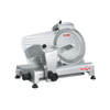 The Skyfood GL250 10" Economy Slicer is a reliable and compact gravity feed slicer designed for light-duty commercial use. With a durable cast aluminum body and anodized finish, this unit offers easy cleaning and consistent performance. It features a 10-inch stainless steel blade and a maximum slice thickness of 1/2 inch.