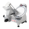 The Skyfood GL250F 10" Economy Slicer is a compact, manual gravity feed slicer ideal for light to medium-duty use in sub shops, restaurants, and cafes with limited space and budget. Equipped with a belt-driven 1/3 HP motor and a 10-inch chromium-plated carbon steel knife made in Italy, this slicer delivers clean, consistent cuts up to 9/16" thick.