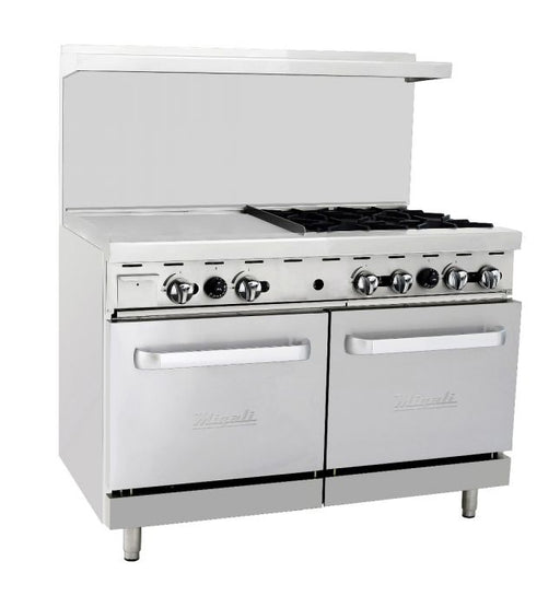 Migali C-RO6-24GL-NG 6 Burner Range, 24" Griddle Left Side, (2) Ovens, Natural Gas