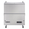 Designed to keep milk cold and fresh in school cafeterias, the Maxx Cold X-Series School Milk Cooler offers an efficient, low-maintenance solution for milk crate cooling and storage. The interior and exterior stainless steel construction is durable and easy to clean. This compact 34-inch-wide commercial milk cooler has a storage capacity of 13.2 cubic feet and holds up to eight 13" x 13" x 11" crates or four 19" x 13" x 11" crates. This commercial milk fridge is energy efficient and environment friendly since it is engineered with urethane foam insulated walls and door. The cold wall construction keeps the temperature consistent at 36°F to 38°F (2°C to 3°C). The flip-top lid and fold-down door allow students, teachers and faculty to access beverages easily. This milk crate cooler features a solid-state digital control system, LED temperature display and integrated condensate evaporator (no drain line connection needed). This stainless steel milk cooler is equipped with four 4" diameter swivel casters (two with brakes) for mobility and features a magnetic gasket that can be easily replaced without any tools. The eco-friendly refrigeration system utilizes R290a hydrocarbon refrigerant to maintain optimum temperatures, allowing contents to be chilled safely and served fresh. The Maxx Cold X-Series School Milk Cooler is ideal for school cafeterias, lunchrooms and dining halls.
