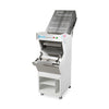 The Oliver 747-N SelectPro commercial bread slicer is ideal for production slicing of large batches of bread. The open-ended infeed chute allows the operator to load the slicer without stopping the machine. The integrated last-loaf pusher is easily engaged to assist the final loaf through the slicing blades. The innovative patent-pending blade cartridge system eliminates handling individual blades when replacing worn blades. In addition, changing bread slice thickness is now possible with the dedicated slice spacing kit.