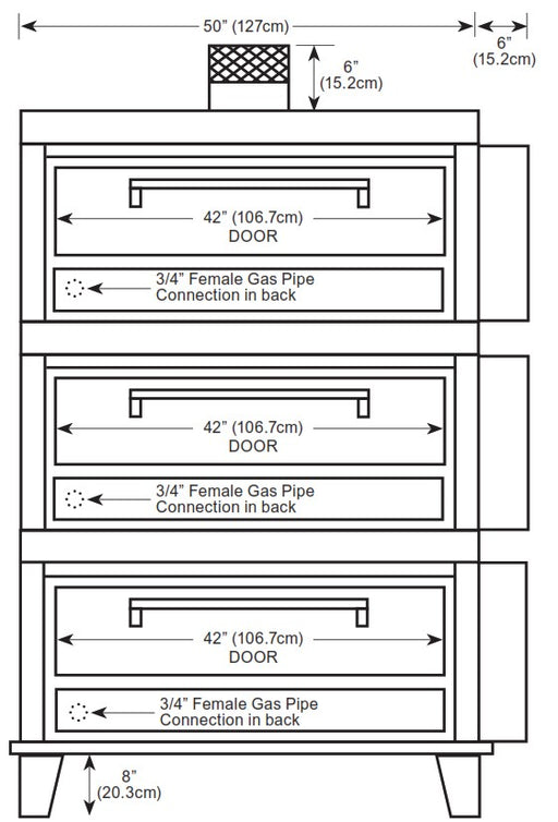 Peerless CW51/42BSC Triple Deck-Type Gas Oven 60,000 BTU, Power-Pak Burners, Right-Side Controls