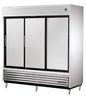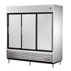 Reach-in refrigerator with 3 stainless steel sliding doors