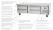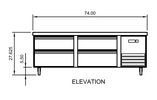 74" wide refrigerated chef base with 4 drawers